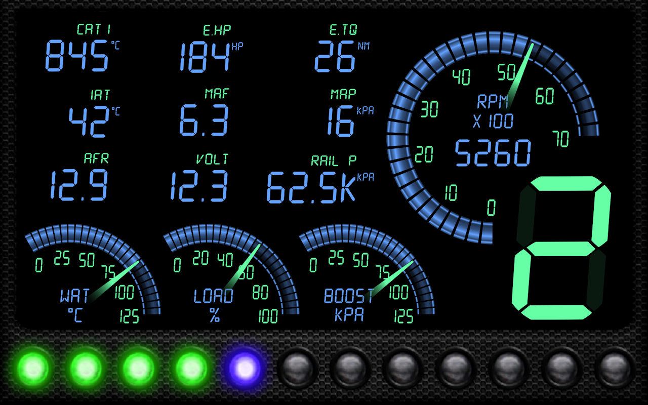 Ini adalah Racing dasbor digital sangat disesuaikan termasuk telemetri hidup , meteran listrik , percepatan pengukuran , lampu shift, estimasi gigi , HUD dan banyak lagi ... Widget digital untuk RPM , Kecepatan , suhu pendingin mesin , suhu udara Intake , suhu Katalis , mesin beban , Turbo boost , Konsumsi BBM , Jam , pompa bahan bakar , Rail tekanan ( gauge dan tekanan relatif ) dan rasio Air / Fuel , Mass Air Flow, intake Manifold Tekanan Air , Bahan Bakar Bekas, Biaya Bahan Bakar , Tegangan dan lain-lain dijelaskan di bawah .